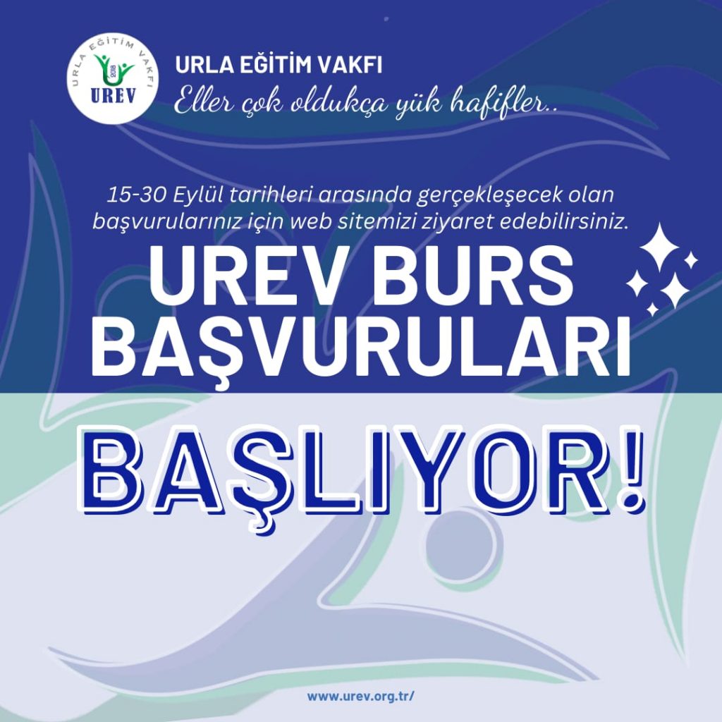 Paydaşlarımızdan olan Urla Eğitim Vakfı (UREV) burs duyuru tarihlerini, başvurmak isteyen öğrencilerimiz için aşağıda paylaşıyoruz.